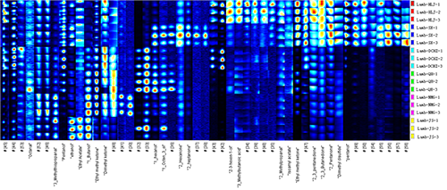 從指紋圖中可看出每種樣品完整的揮發性有機物信息以及樣品之間的差異性,例如: