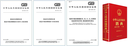 國家質檢總局規定黃曲霉毒素B1是大部分食品的必檢項目之一。現行國家標準(GB 5009.22-2016、GB 5009.24-2016、GB/T 30955-2014、GB 13078-2017等)和2015版《藥典》也明確規定了黃曲霉毒素的檢測方法和限量標準。