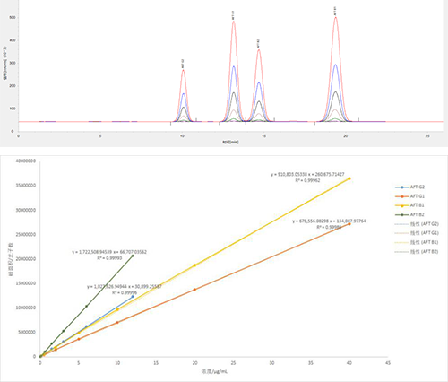 ALC10 黃曲霉毒素G2/G1/B2/B1 標準曲線數據