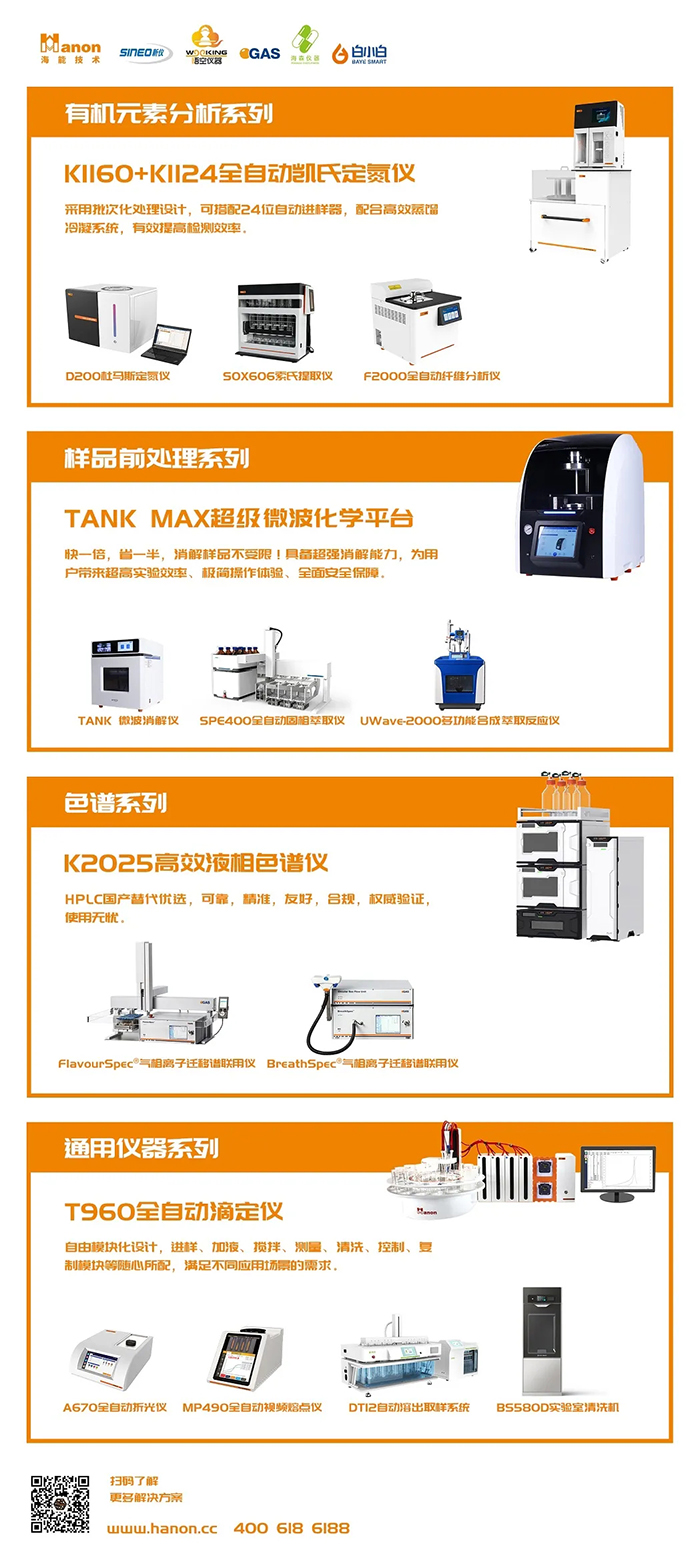 海能技術旗下海能、新儀、悟空、G.A.S.、海森、白小白6個品牌,有機元素分析、樣品前處理、色譜光譜、通用儀器為主的四大系列百余款產品,為高校實驗室提供設備支持,助力基礎研究與關鍵技術攻關。針對高校實驗室的差異化需求,提供本地化解決方案。依托全產業鏈模式,助力實驗室設備更新與科研創新。