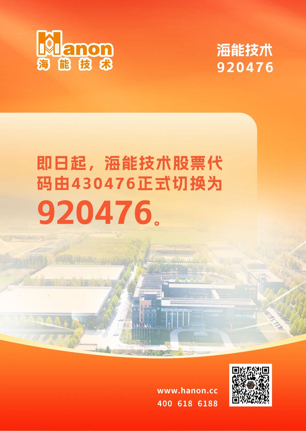 根據北京證券交易所《關于北交所存量上市公司代碼切換上線的通知》,自2025年10月9日起,海能技術證券代碼由原430476正式切換為920476。