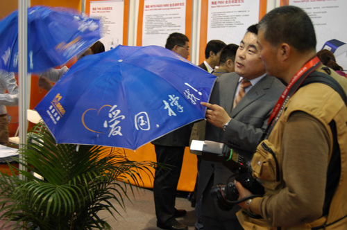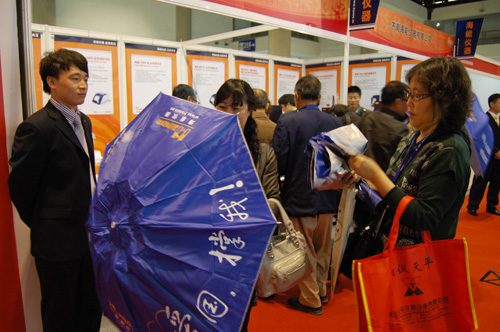 在展覽過程中,海能儀器展位前客戶絡繹不絕,前來咨詢了解海能產品的客戶,除了國內一些知名高校、企業的客戶外,還包括來自澳大利亞、日本、巴西、南非等國的國外客戶,部分客戶表示出對海能儀器的采購意向。同時,海能還為本次CISILE 2011準備了上千把印有“愛國·撐我”的紀念雨傘,并將這些小禮品贈送給了那些愛國的、支持民族分析儀器產業的到場客戶,正是有了他們對國產分析儀器的支持,才使得國內分析儀器企業在近些年有了更加顯著的高速發展。