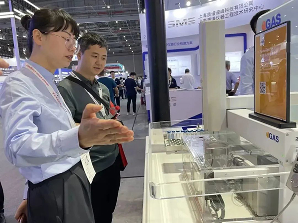 在海森儀器展臺,到訪者共同探討藥物分析技術、發展趨勢。