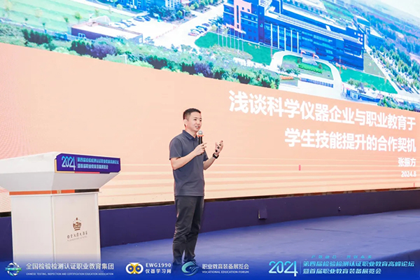 海能技術總經理張振方在論壇上圍繞“科學儀器企業與職業教育于學生技能提升的合作契機”作主題報告,分享行業見解,探討如何與職業教育相結合,促進學生技能提升和行業人才培養。