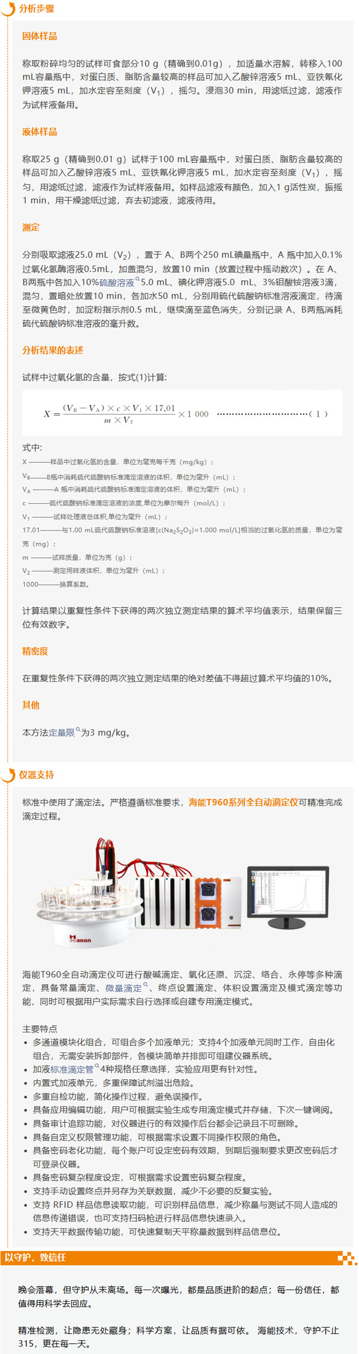 面對這一亂象,國家早已建立起嚴格的食品安全標準體系。依據GB 5009.226-2016《食品安全國家標準 食品中過氧化氫殘留量的測定》,第一法 碘量法: