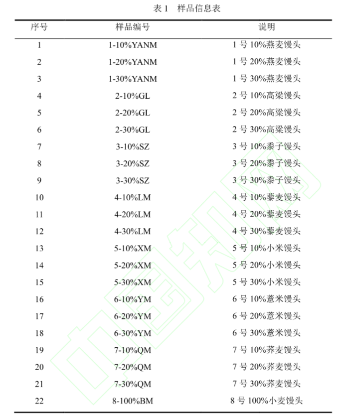 為闡明不同雜糧和添加量的饅頭揮發性成分差異,研究采用氣相色譜-離子遷移譜(GC-IMS)分別對質量分數為 10%、20%、30%的燕麥、高粱、黍子、藜麥、小米、薏米、蕎麥饅頭進行揮發性成分測定與分析,根據揮發性成分的指紋圖譜并結合多元統計分析方法探究不同雜糧饅頭間的差異。