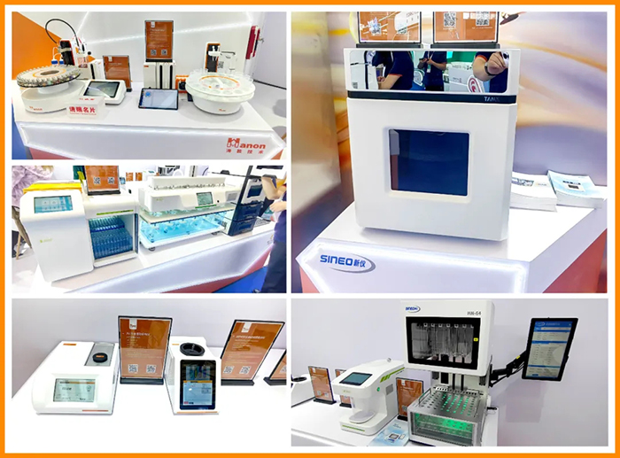 悟空K2025高效液相色譜儀,海森DT12自動溶出取樣系統、DC300溶媒脫氣儀,新儀TANK微波消解儀,海能T960全自動滴定儀、T930全自動水分滴定儀、MP490全自動視頻熔點儀、A670全自動折光儀,白小白BS580D實驗室清洗機,新儀HN-64全自動氮吹儀等儀器悉數展出。