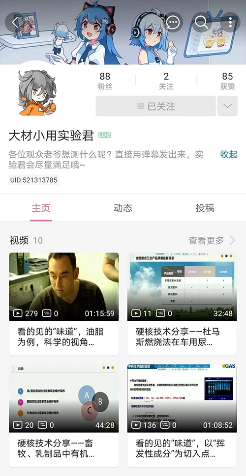 在b站(bilibili)搜索“大材小用實驗君”,https://space.bilibili.com/521313785 進入我們的b站主頁,即可觀看往期直播回放,后期還有更多有趣實用的應用視頻上傳哦~敬請期待!