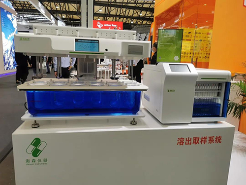 3、海森儀器雖是第一次參展,也是做足了充分的準備。RCQS自動溶出取樣系統是由DT120自動溶出度儀和SC1216自動取樣工作站組成的全新一代自動溶出取樣裝置,廣泛應用在藥物研發部門、藥物檢測部門、學校及各大藥廠的實驗室。