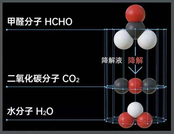 以常見有害揮發性有機物甲醛為例:HCHO+降解液=CO?+H?O