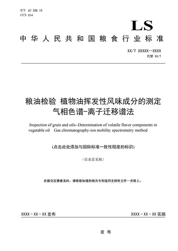 為了確保食用植物油的風味品質一致性和穩定性,并科學鑒別油脂種類、精準識別油脂摻假及含量,國家糧食和物資儲備局公開發布了《糧油檢驗 植物油揮發性風味成分的測定 氣相色譜-離子遷移譜法》的征求意見稿。該征求意見稿詳細規定了通過氣相色譜-離子遷移譜法(GC-IMS)測定植物油揮發性風味成分的方法。歡迎老師們提出寶貴的意見!