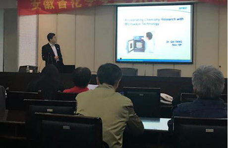 會議期間,蚌埠學院殷老師介紹了利用微波化學制備MOF材料進行水處理研究,皖西學院付老師介紹了自下而上利用微波在液相體系中制備量子點,安徽工業大學王老師也撰文介紹了微波化學反應平臺在有機化學科研與教學中的應用。
