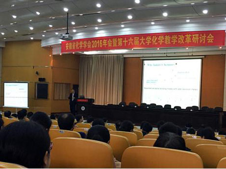 2016年11月18日至19日,“安徽省化學會第十六屆年會暨第十六屆大學化學教學改革研討會”在安徽工業大學召開。此次會議是安徽省高等院校從事化學、化工、材料及相近專業教學的教師和同行們進行教學經驗與科學研究交流的盛會。