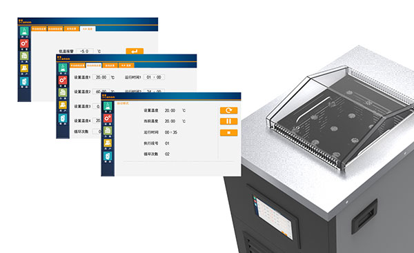 1、可根據用戶自己的測試方法設置實驗初始溫度、恒溫溫度、恒溫時間以及循環次數,儀器內部可存儲999種測試方法。