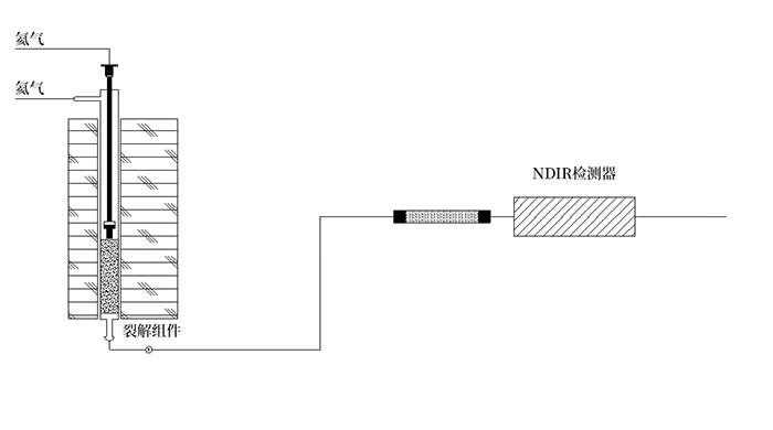 氧模式—含氧有機物樣品由銀舟\銀囊包裹,由坩堝送入高溫裂解管內,在惰性氣體氣氛和1150C高溫下,在裂解中形成的氧自由基與裂解管中裝填的高純炭黑反應生成CO;裂解產生的其它氣態產物與CO一起由載氣攜帶,進入NDIR檢測器,在CO 的特征波長處測定對紅外光的吸收強度,計算得出O元素的含量值。